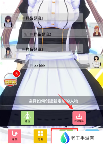 点击游戏内的【定制】-【建立】-【代码输入】-在相册中选择要导入的人设代码图片即可