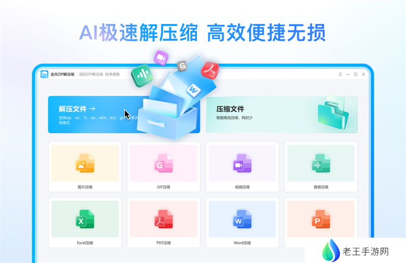 金舟ZIP解压缩是一个全新的电脑文件压缩和解压软件,界面干净简洁,纯净无广告无弹窗,无需付费会员。完全免费使用,是一个纯粹的解压缩软件。适用于win7及以上的操作系统。除了常用的rar,zip,7z,还额外支持四十多种解压格式,兼容性很高。解压速度非常快,1GB文件只需要3秒即可完成解压,压缩文件的速度也是很快的。