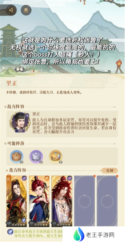 3、阿蝉10级后,佛脚升孙权或者张鲁(看自身哪个密探连读该)为第五阶段的打里正boss做准备;