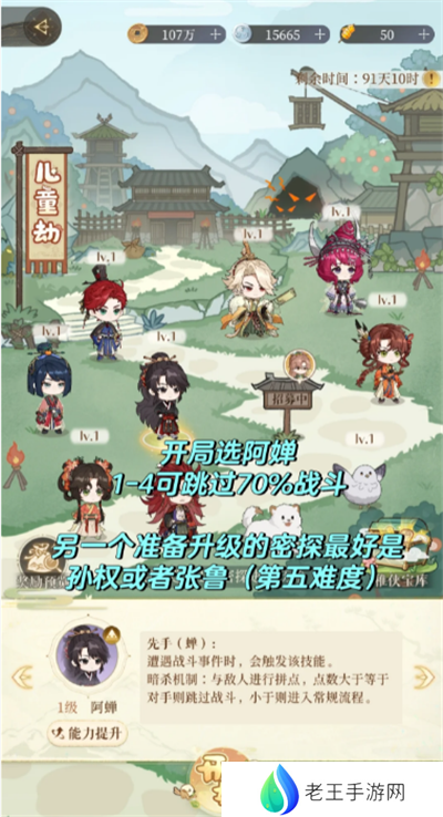5、一切都要为最终boss里正考虑,练度低的不选阿蝉,看儿童劫历练密探中谁的练度高就用谁。