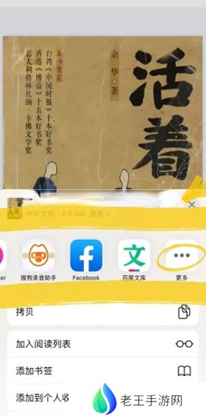 第三步:点击中间的分享的功能,也可以通过其他的app进行阅读。
