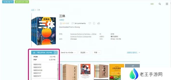 第三步:点击你想下载的图书,可以有多种格式(EPUB,PDF,MOBI,TXT等)