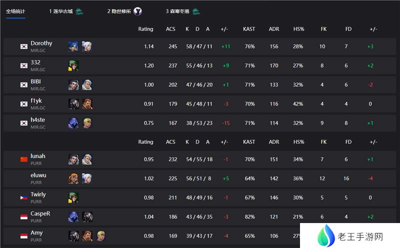 改变者赛 太平洋联赛,B组第一轮,来自韩国的队伍MIR 2-1 击败了国际纵队PURR,值得一提的是,PURR阵中有一位来自中国的选手lunah,本场比赛她的总战绩也是PURR的队内最高。