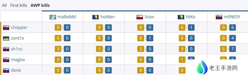 首杀方面主要体现在狙击手上,但显然m0NESY在首杀上要更胜一筹。面对sh1ro打出3-1首杀对位。