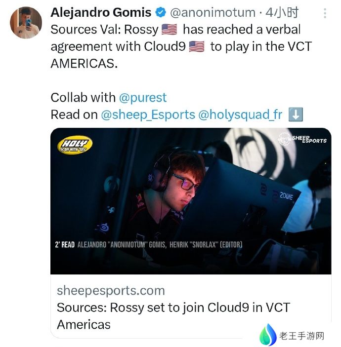 根据媒体人Alejandro Gomis消息,Rossy与C9达成口头协议,将征战2025年VCT 美洲联赛。