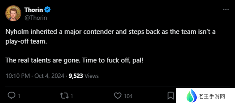 Thorin在社媒发表了自己对AstralisCEO辞职一事的看法。