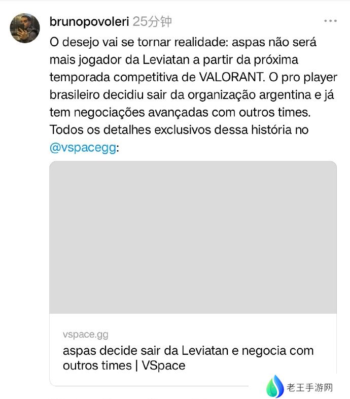 根据媒体人Bruno Povoleri消息,Aspas决定离开Leviatan,并且已经与其他战队进行了深入的谈判。多家组织对aspas表现出浓厚的兴趣,并愿意支付Leviatan要求的转会费。